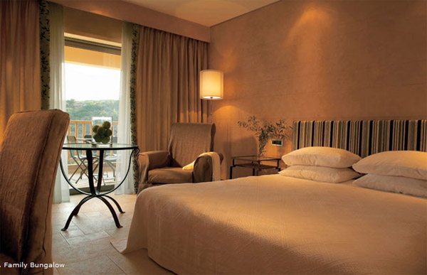 В отеле 154 бунгало и вилл различных категорий. Интерьеры номеров сочетают изысканный классический стиль, изящную средиземноморскую атмосферу и греческий колорит, в отделке используется натуральный камень и дерево. Шикарные виллы обставлены мебелью ручной работы. С балконов и террас открываются восхитительные виды на бирюзовую гладь Эгейского моря и храм Посейдона. В каждом номере: кондиционер и система обогрева, спутниковое телевидение, прямой телефон, CD/DVD player, сейф, мини-бар, набор для приготовления чая и кофе (на виллах), фен, халаты, тапочки, пляжные полотенца.