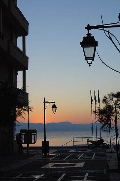 Комната для завтраков - на верхнем этаже отеля с великолепным видом на Коринфский залив, ресторан находится в соседнем отеле Madas, кафе-бар на берегу моря.