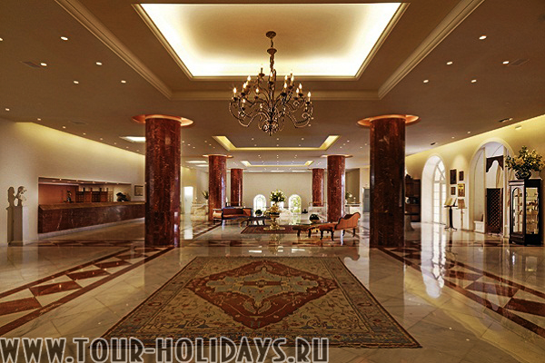 Отель расположен на острове Крит, в 25 км от международного аэропорта Ираклиона, в поселке Агия Пелагея. Отель воссоздает великолепие Минойского дворца, интерьеры которого отличаются утонченной роскошью: отделка из мрамора и дерева натуральных оттенков, картины знаменитых греческих художников из частных коллекций, статуи, изящная антикварная мебель. В отеле: 7 бассейнов, 3 теннисных корта, столы для настольного тенниса и бильярда, площадка для мини-гольфа, центр водных видов спорта, дайвинг—центр, занятия йогой, аква-аэробикой, пляжный волейбол, баскетбол, дартс, водное поло, морские прогулки, устраиваются разнообразные развлекательные и шоу программы, дискотеки, уроки греческого танца. Живописные пруды, фонтаны, водопады, 3 оранжереи, кактусовый сад, 3 песчаными оборудованными пляжами, отмеченными «Голубым флагом». Конференц-центр, выставочные площади и современно оборудованный бизнес-центр, магазины, игровой зал, причал для яхт, парковка, вертолетная площадка, аренда автомобилей и яхт (включая собственную 13-метровую яхту комплекса), лимузин-сервис, услуги прачечной и химчистки, детский бассейн, игровая площадка, игровая комната, работает мини-клуб и детская анимация, детское меню, услуги няни, парк развлечений для детей «Минойский сказочный мир», огромный выбор аттракционов. SPA центр: бассейн с гидротерапией, сауна, парная, бассейн с холодной водой, зал для цветотерапии и хромотерапии, тренажерный зал, салон красоты, зона отдыха с баром, а также 8 процедурных кабинетов, массаж, косметологические и SPA процедуры.
