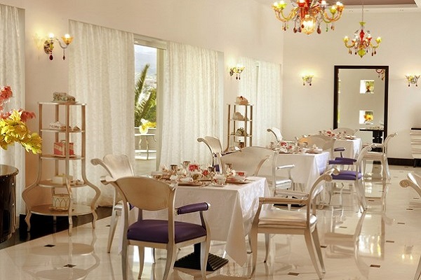 Ресторан H2O Aqua Fusion - у бассейна - блюда современной кухни в стиле fusion и меню азиатской и международной кухонь в обрамлении светового шоу, ресторан Red Pepper - богатый шведский стол международной кухни. В ресторане Raki Cretan — традиционная критская кухня. Модный диско-бар Dazzle с лаунж-зоной - лучшие марки алкогольных напитков, стильный бар Hot Spot — освежающие напитки, бар Blue Diva, расположенный на утесе пляжа - для изысканных частные приемов. А также ресторан Рoseidon Fish Taverna - традиционное греческое меню из свежайших морепродуктов в сопровождении еженедельного шоу с живой музыкой. Ресторан Precieux Gourmet - французская кухня, живая фортепианная музыка. Safran Pool Restaurant & Bar - шедевры средиземноморской и итальянской кухни, свежайшие морепродукты и широкий выбор напитков. Ресторане El Greco - традиционные критские и интернациональные блюда, восхитительный вид на море, живая фортепианная музыка, ресторан Knossos - украшен фресками в минойском стиле - прекрасный шведский стол. Лобби-бар Ikaros - напитки, легкие закуски, десерты, бар у бассейна Azure Bar - алкогольные и безалкогольные напитки, экзотические коктейли. Бар на пляже Aquamarine - освежающие напитки. Предлагается обслуживание в номерах, возможна организация частных вечеринок.