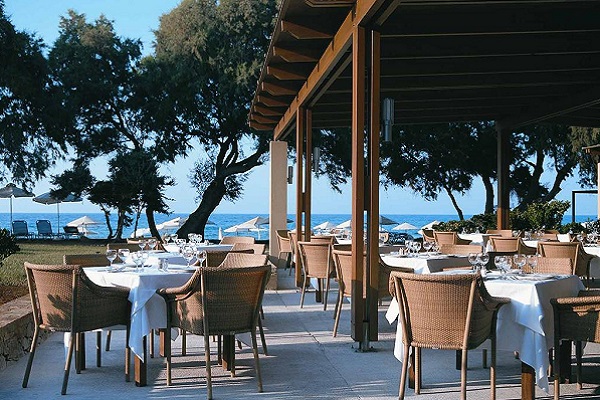 В центральном ресторане с террасой - буфеты блюд местной и интернациональной кухонь, в рыбном ресторане - деликатесы из морепродуктов, пляжный бар Tavernaki - напитки, закуски, блюда-гриль, Kafenion — традиционная греческая кофейня, кафе-кондитерская Cafeteria - десерты и безалкогольных напитков. Уютный бар в главном здании располагает к приятному отдыху.