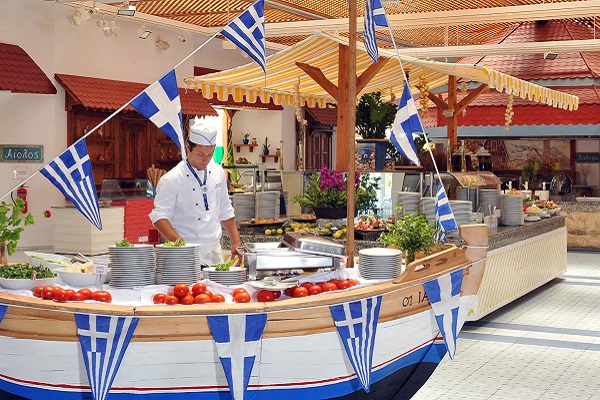 Отель работает по системе "всё включено". Главный ресторан Zorbas - традиционные и интернациональные деликатесы. Центральный ресторан - шведский стол, таверна, центральный бар, бар у бассейна, диско-бар.