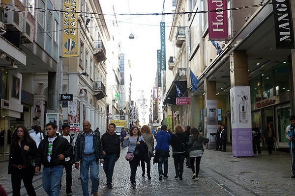 В Афинах - целые улицы торгующие приблизительно одним товаром. Например вдоль проспекта Вулиагменис - магазины осветительных приборов. Улица Митрополеус - меховые и ювелирные изделия. Существуют специализированные магазины для туристов, где продаются сувениры Tourist's Shop. Иностранцам также выгодно пользоваться магазинами Duty Free, где все дешевле на 15-20%.