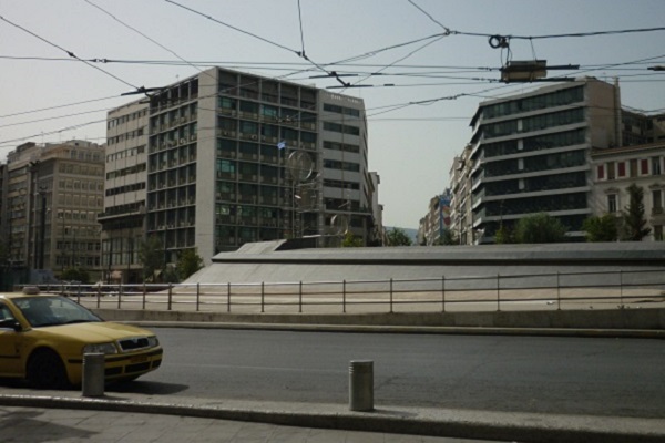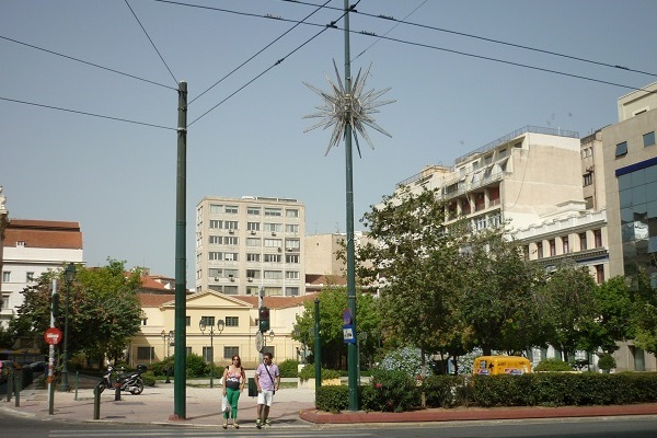 Окрестности площади заполнены конторами, отелями и магазинами. К западу, в направлении железнодорожного вокзала, находится Метаксургио - район, переживающий своего рода расцвет и возрождение под влиянием соседних районов Псирри и Гази, севернее и восточнее площади Омония располагаются Экзархия и Национальный археологический музей.