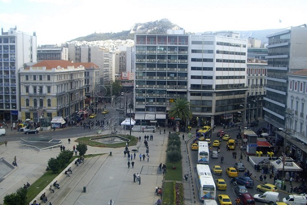 Она, без сомнения, является самым сердцем города, она - центр повседневной торговли и прочих будничных развлечений. Её характеризует беспрестанное коловращение людей и машин - движение вокруг площади круговое, сюда стекаются улицы Афинас, Стадиу и Панепистимиу (Венизелу), исходящие от площадей Синтагмы, Академии и Монастираки. Омония по праву считается и самым урбанистическим местом Афин. Подготовка к Олимпийским играм 2004 года изменила её внешний облик в лучшую сторону - раньше Омония была пристанищем наркоманов и бездомных албанских беженцев - только сейчас обновлённое сердце города выглядит современно. На площади находится множество киосков, а за киосками магазинчиков, сулящих скидки, а также заведения, предлагающие фастфуд.