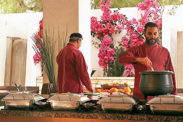 Отель работает по системе "всё включено". Центральный ресторан - «шведский стол» с разнообразием блюд греческой и интернациональной кухни, Deep Blue — таверна, расположенная над морем, здесь можно отведать традиционные греческие блюда, в ресторане Riviera подаются деликатесы средиземноморской кухни, дополненные лучшими местными винами. Элегантный ресторан Bamboo Nero, украшенный огромной статуей Будды, специализируется на экзотических азиатских блюдах. Бар у бассейна в аквапарке предлагает широкий выбор закусок, прохладительных напитков и мороженого. Шикарный лобби-бар с видом на море располагает к приятному отдыху. Также к услугам гостей — бар на пляже и 2 бара у бассейнов.