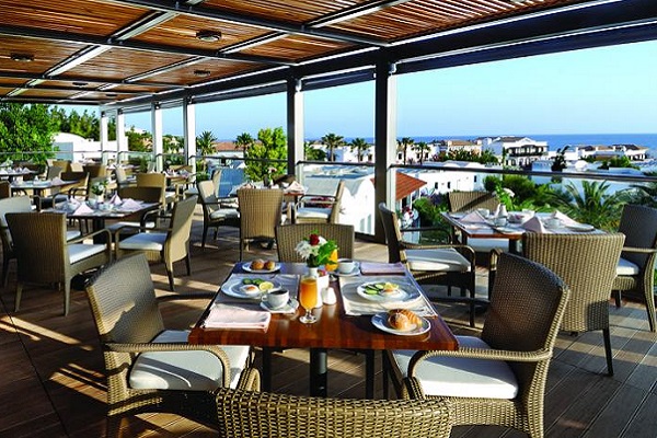 Отель работает по системе "всё включено". В главном ресторане Ambrosia - блюда местной и интернациональной кухонь, шведский стол, таверна Athena - греческие и интернациональные блюда, лобби-бар Βacchus, пляжный бар Pelagos , бар у бассейна Poseidon, диско-бар Filippos