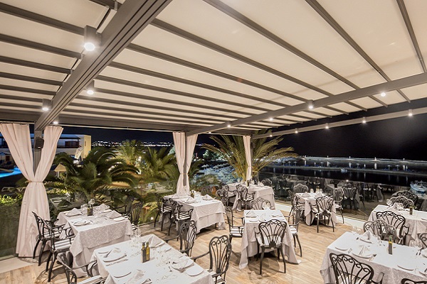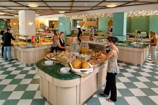 Отель работает по системе "всё включено". Большое разнообразие ресторанов, баров и закусочных, способных удовлетворить самые изысканные вкусы наших гостей. Athina - главный ресторан, Гурмэ-буфет, ресторан Thalassa, La Pergola, Midnight снак бар, Ресторан a la carte - элегантный стиль одежды во всех ресторанах обязателен. Убедительно просим господ в местах приема пищи и напитков в вечерние часы быть в длинных брюках. Zorbas a la carte ресторан на открытом воздухе - греческая национальная кухня, Firenze - итальянский ресторан, Poseidon - ресторан на открытом воздухе, с рыбными деликатесами.