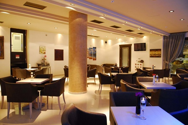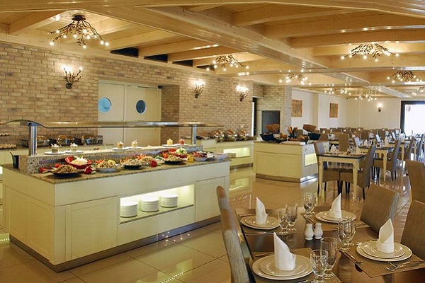 Отель работает по системе "всё включено". Главный ресторан отеля предлагает посетителям широкий выбор блюд греческой и международной кухонь. В отеле 2 ресторана. Один из них работает по системе a la carte и требуется бронирование. Главный бар и бар у бассейна.