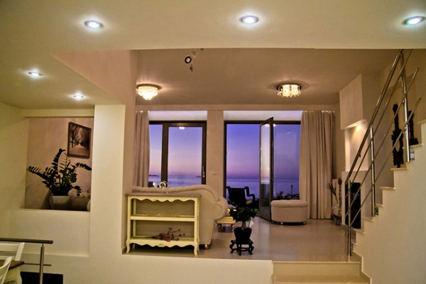 Нижний этаж: полностью оборудованная кухня, салон с камином TV плазма, сейф, туалет, стиральная машина и гладильная комната.