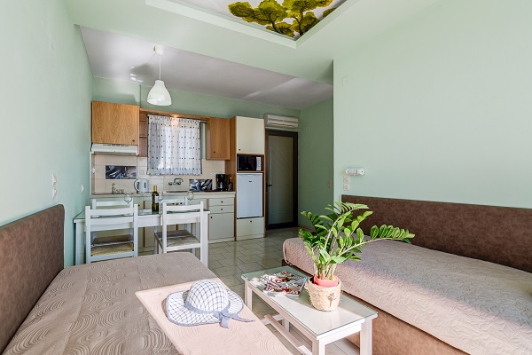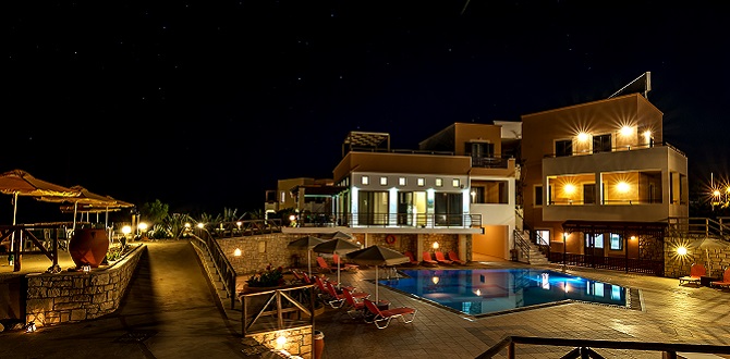 Апартаменты расположены на острове Крит, в тихом и романтичном месте, в поселке Сфакаки, рядом с песчаным пляжем, в 75 км от аэропорта, рядом с городом Ретимнон. В отеле есть бассейн с пресной водой 100 м2, лежаки и зонтики вокруг бассейна, ТВ салон с домашним кинотеатром и DVD плейером, доступ в интернет, детская площадка, паркинг. Апартаменты подходят для размещения от 2 до 8 человек. Это Studio и Apartments с 1, 2 и 3 спальнями.