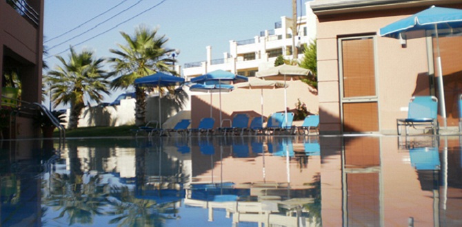 В каждых апартаментах: полностью оборудованная кухня, кондиционер, спутниковое телевидение, сейф, душ, балкон или терраса с видом на бассейн или море.