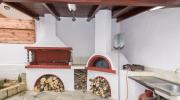 На основном этаже - традиционно меблированная гостиная с камином и телевизором. Три ступеньки ведут через красивую каменную арку к полностью оборудованной кухне открытой планировки. В вашем распоряжении большой обеденный стол в трапезном стиле, большой холодильник с морозильной камерой, посудомоечная машина и микроволновая печь. Рядом с кухней - туалет и подсобное помещение со стиральной машиной. На этом же этаже находится главная спальня с двуспальной кроватью и полностью оборудованной ванной комнатой с сауной. Из кухни и спальни есть выход на веранду с садовой мебелью, каменное барбекю и традиционная духовка