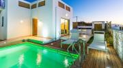 Одноэтажная вилла, одна из двух передних вилл, с открытым видом на море, с 2 спальнями, ванной и бассейном. Вилла имеет собственную огороженную частную территорию, покрытую травами и цветами, бассейн с подогревом и гидромассажем, шезлонги, парковку. В бассейне - система сигнализации для безопасности детей. Рядом с бассейном - большая ванна-джакузи на 3 человека! Есть зона для отдыха на открытом воздухе и барбекю на углях.