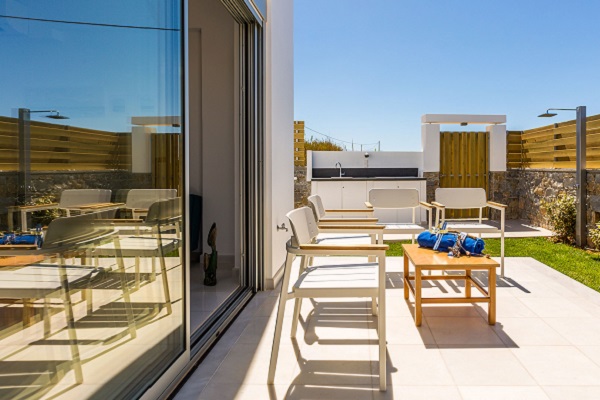 В комплексе есть два разных типа вилл. Передние виллы - одноэтажные, задние — двухэтажные. Комплекс создан и оформлен по высоким стандартам, с уважением к окружающей среде и с использованием только фирменных материалов, поскольку здесь важна каждая деталь! Кухонная столешница от Compac, полы в спальнях от Kahrs, греческий белый мрамор, системы водоснабжения от Grohe, светильники от Augenti и Beca, окна и двери Schüko, кровати от Cocomat. Мебельный дизайн Poul Christiansen & Boris Berlin («Gubi dk»), дизайнер «Emu» Paola Navone - это лишь некоторые детали, которые вызовут незабываемый восторг. Комплекс был разработан с учетом безопасности детей. Для детей есть игровая детская площадка, а у родителей - возможность отдохнуть, когда дети занимаются играми.