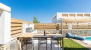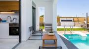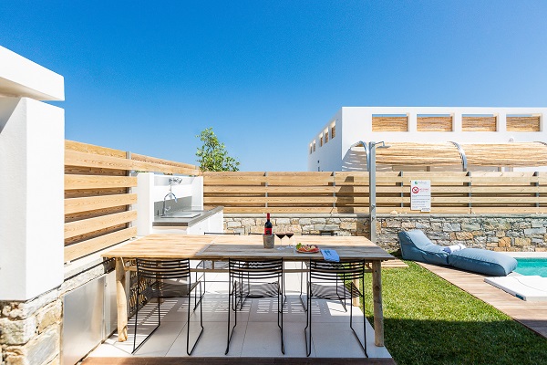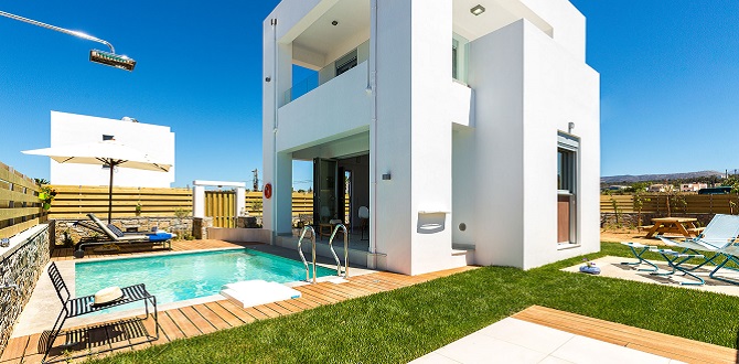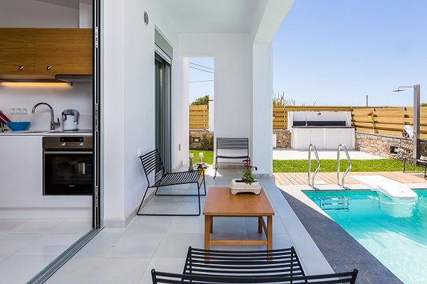 В комплексе есть два разных типа вилл. Передние виллы - одноэтажные, задние виллы — двухэтажные. Комплекс создан и оформлен по высоким стандартам, с уважением к окружающей среде и с использованием только фирменных материалов, поскольку здесь важна каждая деталь! Кухонная столешница от Compac, полы в спальнях от Kahrs, греческий белый мрамор, системы водоснабжения от Grohe, светильники от Augenti и Beca, окна и двери Schüko, кровати от Cocomat. Мебельный дизайн Poul Christiansen & Boris Berlin («Gubi dk»), дизайнер «Emu» Paola Navone - это лишь некоторые детали, которые вызовут незабываемый восторг. Комплекс был разработан с учетом безопасности детей. Для детей есть игровая детская площадка, а у родителей - возможность отдохнуть, когда дети занимаются играми.